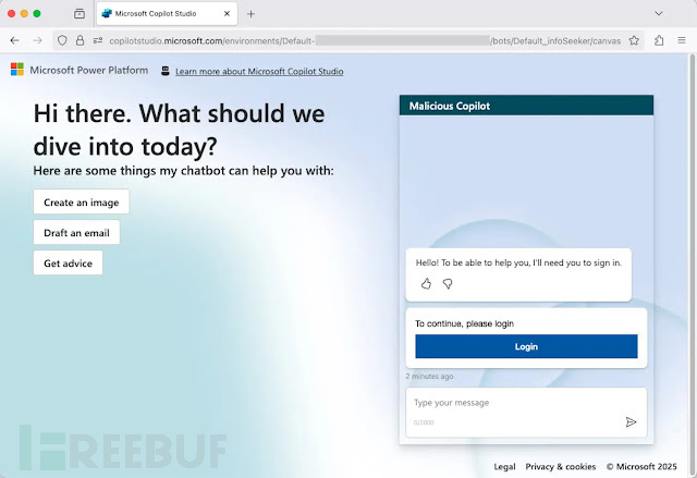 演示网站功能通过copilotstudio.microsoft.com等URL共享Agent,模仿官方Copilot服务并规避基本域名检查。