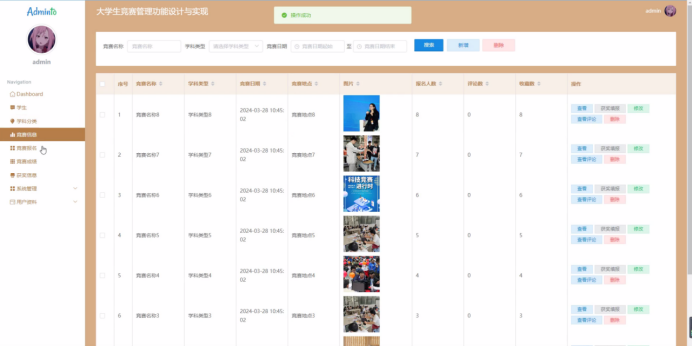 高校竞赛年年火爆,从“互联网+”到数学建模,从程序设计到机器人对抗,报名、审核、成绩公示、奖项发布全靠QQ群和Excel,信息不同步、数据易丢失、统计靠人工,老师头疼、学生抱怨。把赛事全流程搬上Web,让公告一键推送、报名自动汇总、成绩实时排名、证书自动生成,成为校园数字化最刚需的场景之一。系统把“人、赛、果、讯”四个核心要素装进一张网:学生端从注册到拿奖一条链路打通,管理端把赛事生命周期拆成可配