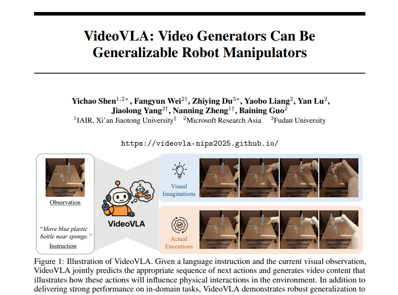 这项由微软亚洲研究院的沈逸潮、魏方云、杨交龙等研究人员与西安交通大学、复旦大学合作完成的研究发表于2025年12月的第39届神经信息处理系统大会(NeurIPS 2025),论文编号为arXiv:2512.06963v1。这项突破性研究首次将视频生成模型成功转化为机器人操作系统,让机器人在执行任务前能够"脑内预演"整个操作过程。