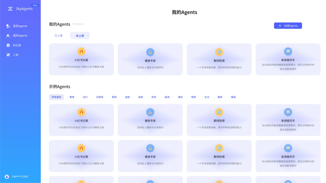 (4)SkyAgents(昆仑万维)—— 模块化 + 可视化的代表