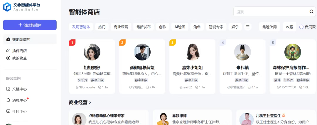 智能体中心覆盖工具类、生活类、娱乐类应用。