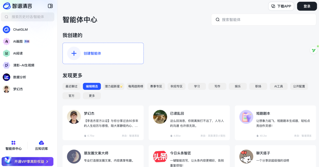 (7)智谱清言 Agent 生成器 —— 功能最“全能”的选手