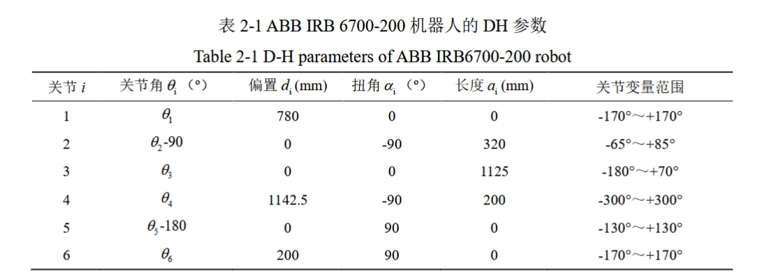 1.本例中涉及6个转动关节,ABB IRB 6700-200 DH参数如图,根据机器人DH参数设置坐标。