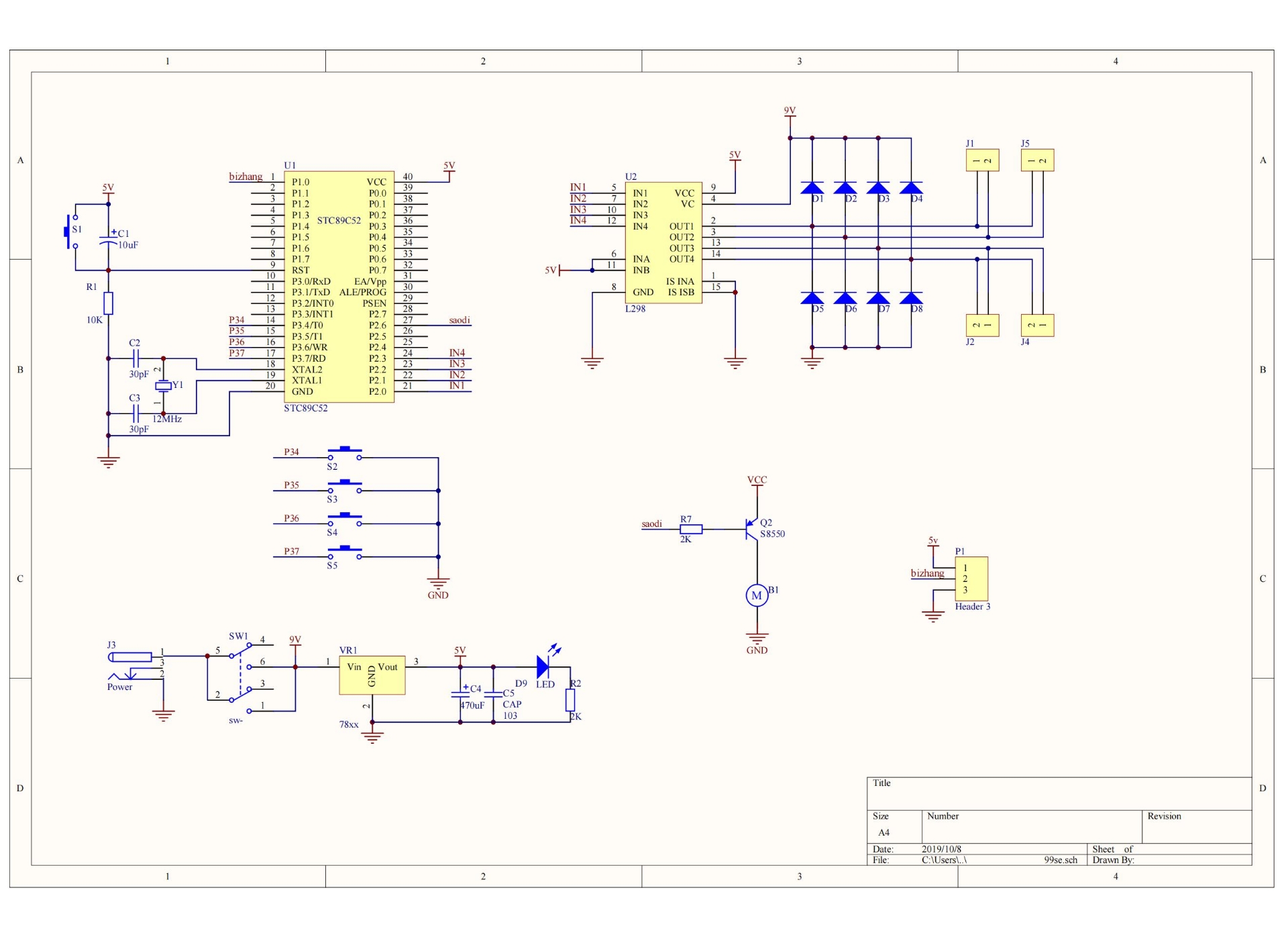 基于51单片机的扫地小车,扫地机器人设计。 有原理图,程序代码,原文。 可做实物。 主要功能有寻迹避障,来回清扫功能,往返清扫功能。