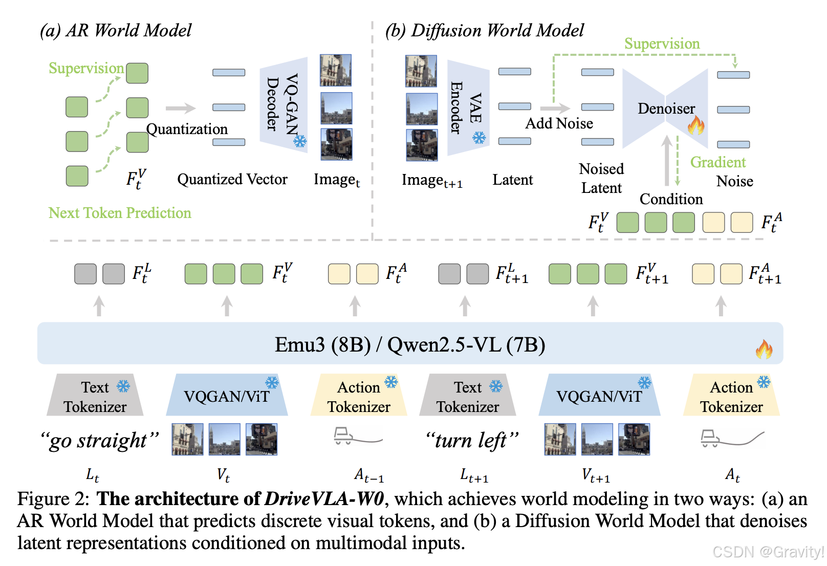 - 覆盖两种主流VLA:1. 离散token【AR世界模型】 2. 连续特征【扩散世界模型】