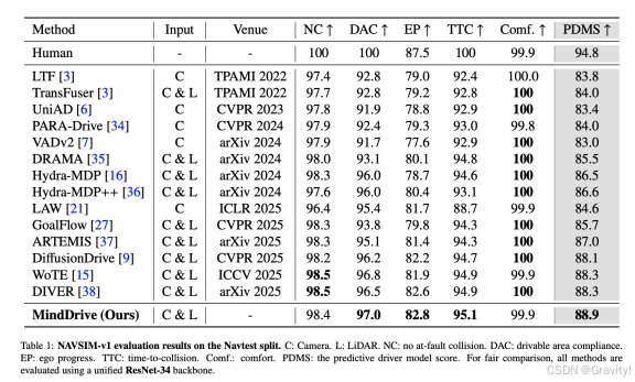 Scoring head:轻量级的评分头,输出最终的、量化的轨迹综合得分