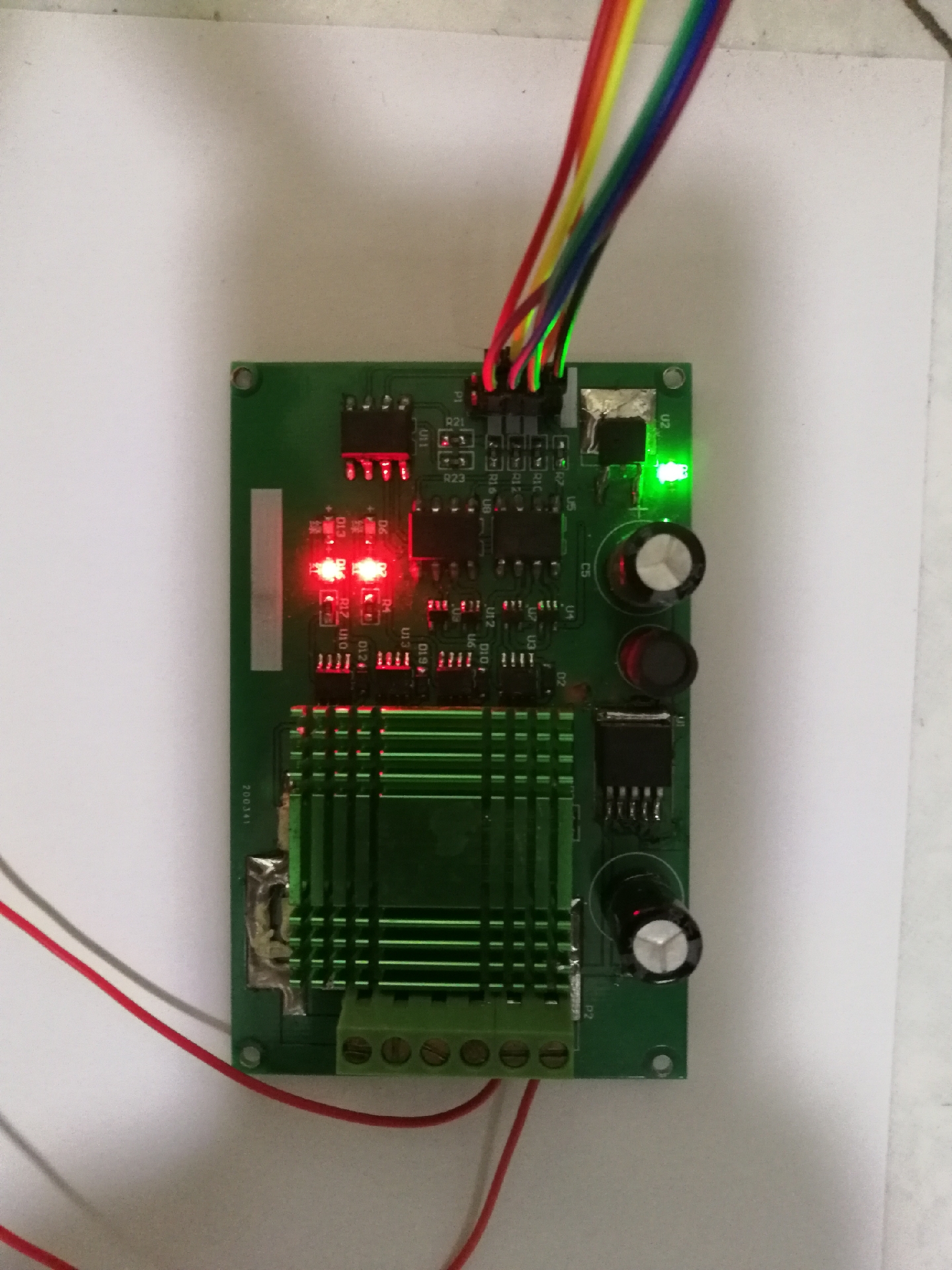 玩大功率电机的老铁都知道,普通驱动芯片遇到堵转电流分分钟冒烟。这板子直接甩出四对IRFB3607 MOS管组成双H桥,0.015Ω的内阻意味着什么?假设你作死开到30A电流,单个管子的发热功率也就30²×0.015=13.5W,配合那坨铝挤散热片,拿热成像仪怼着拍都稳如老狗。