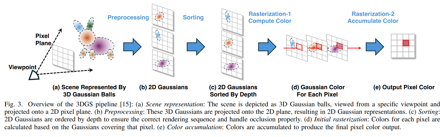 3DGS 作为一项先进的 3D 场景渲染技术,备受瞩目,尤其因其高质量的输出和场景重建的自动化而备受推崇。然而,其计算需求巨大,在低功耗、资源受限的边缘设备(例如 NVIDIA Jetson Orin NX)上实时执行并不切实际。此前加速 3DGS 的工作通常依赖于构建专用硬件加速器,这增加了成本和复杂性。本文的核心思想是利用和增强现有的 GPU 光栅化器,充分利用其在三角形网格渲染方面的既有效率,而不是开发新的硬件。