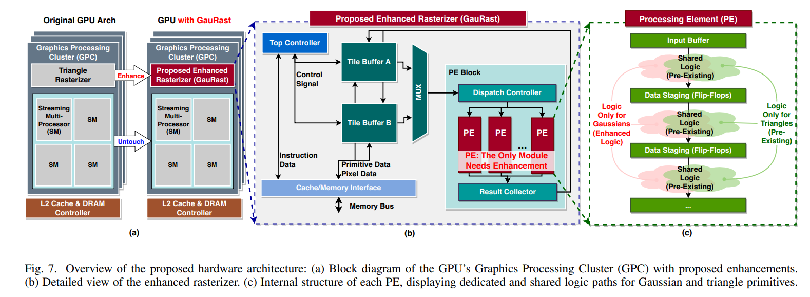 光栅化硬件的扩展:GauRast 设计的主要修改包括: