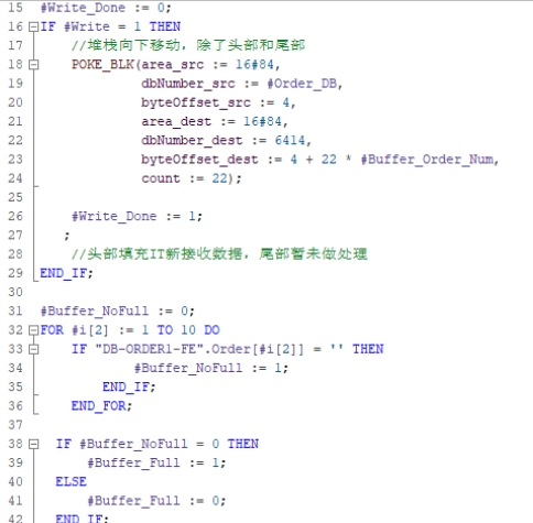 分析:这里创建了 RobotMBCLIENT 功能块实例,专门用于与ABB机器人通讯。同样设置了相关参数,不同的是 MBADDR 和 IPADDR 根据机器人实际情况配置,数据存储在 RobotDataBuffer 数组,错误信息存于 RobotErrorID 中。通过这样的通讯,PLC可以向机器人发送指令,如控制机器人的动作,或者接收机器人的状态信息。