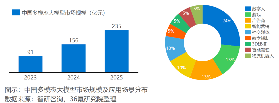 当前,中国大模型行业正经历技术迭代与生态重构双重驱动的关键变革。最近,36氪研究院发布了《2025年中国大模型行业发展研究报告》。根据该报告,2024 年市场规模已达 294.16 亿元,预计 2026 年将突破 700 亿元,其中多模态大模型以 156.3 亿元规模领跑,数字人、游戏等场景应用增长迅猛。行业竞争逻辑已从单点技术对决,转向生态构建、技术研发、行业赋能等多维度的体系化较量。