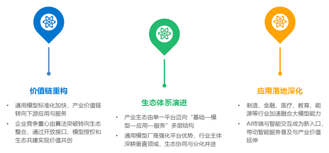 产业层面,价值链重心向应用与服务层聚集,生态协同成为竞争核心。行业将加速向制造、金融、教育等垂直领域渗透,AI 终端与智能交互成为新入口。治理方面,中国正探索 “发展 - 规范 - 安全” 三元统一的治理路径,以安全可信为核心,为全球提供可借鉴的治理方案。