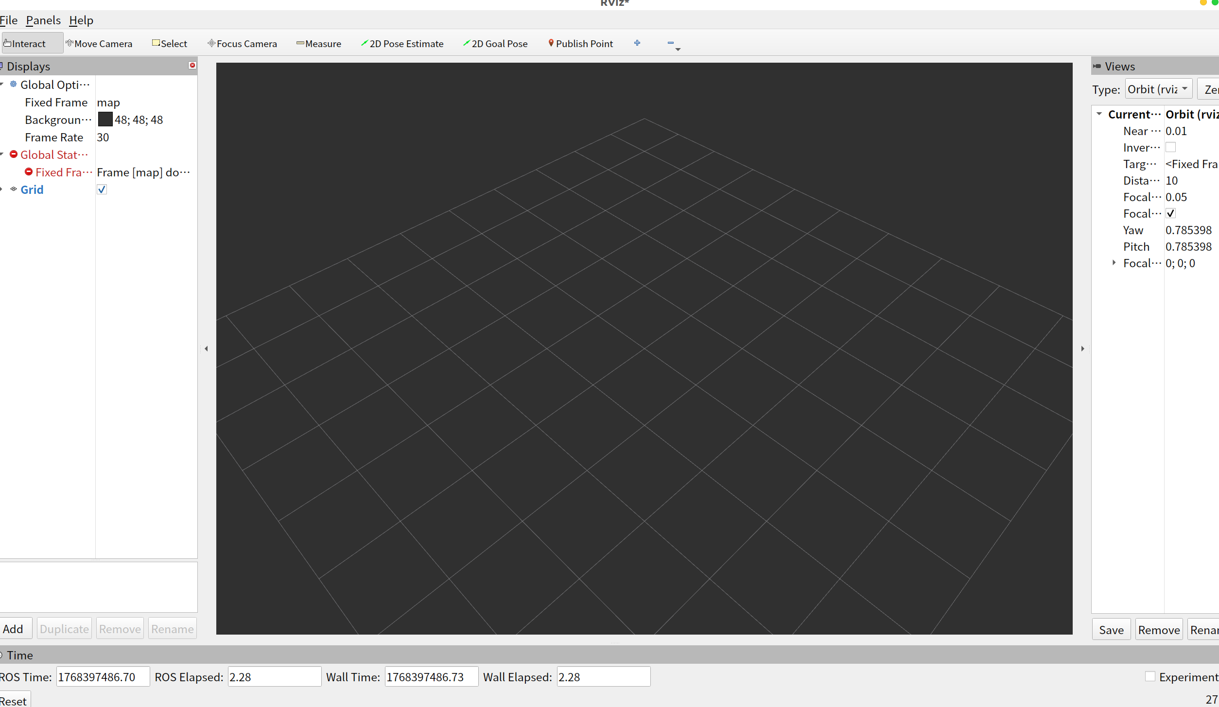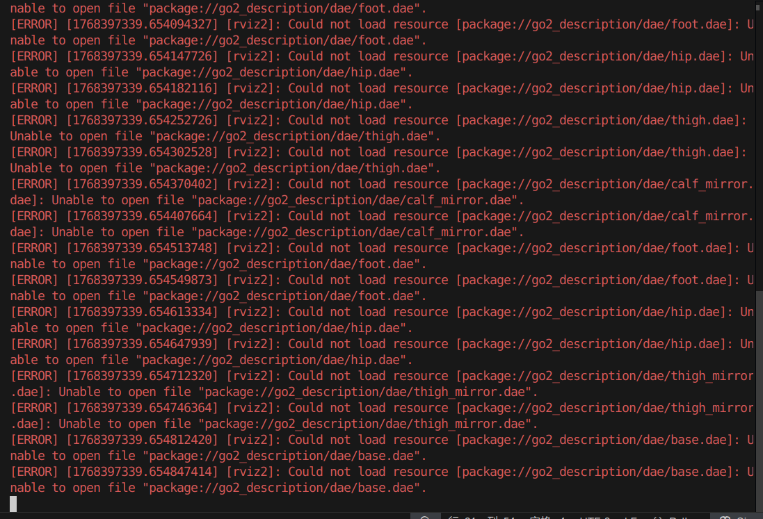 特别提醒:一定要在~/unitree_go2_ws目录下先使用. install/setup.bash指令,再使用rviz2指令,不然就会出现下面两张图片的情况。朱波已经有了惨痛的教训,找了一个多h的bug才发现!!!