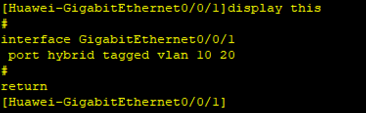 port hybrid tagged vlan 10 20 在数据通过时打标签(tag)
