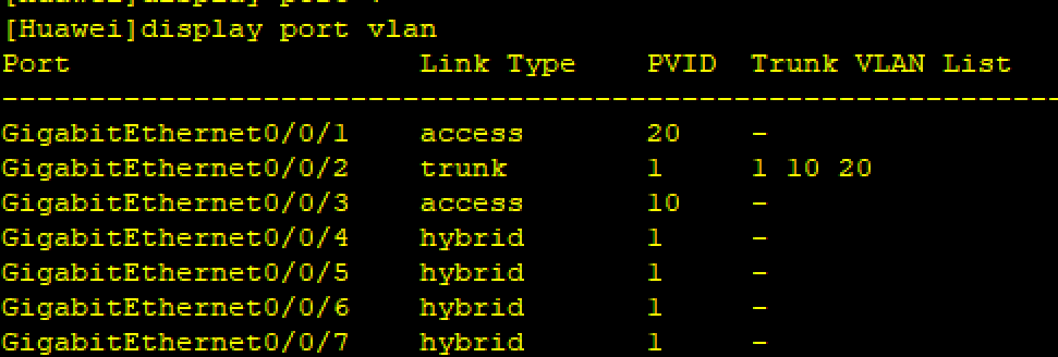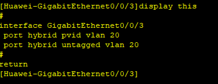port hybrid pvid vlan 20 将接口pvid设为20,会在PC发送数据时打上标签(tag)