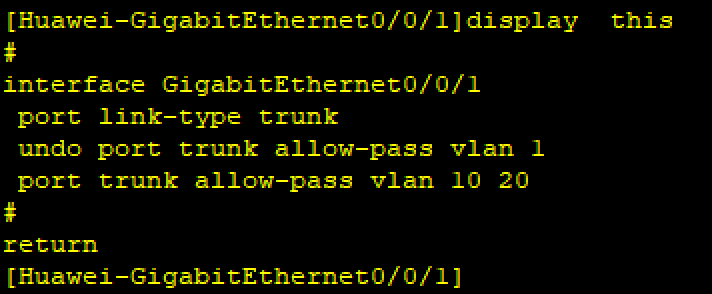 port trunk allow-all vlan 10 20 允许vlan 10和20通过