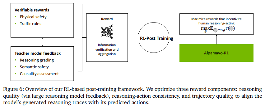 采用 GRPO(Group Relative Policy Optimization)算法,通过三大奖励信号实现推理质量、动作一致性和安全性的联合优化(如图 6 所示):