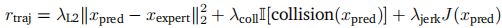 - L2 模仿项:拉近预测轨迹与专家轨迹的距离;