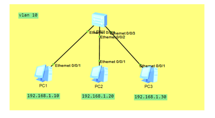 2、将交换机的 0/0/1、0/0/2、0/0/3接口划分到 VLAN 10(接口设为Access模式)