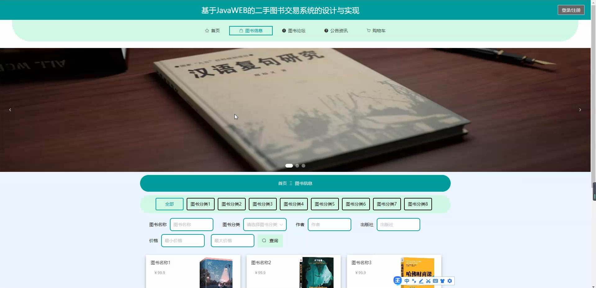 - 搜索与筛选模块:提供多种搜索和筛选条件,如书名、作者、分类、价格范围、新旧程度等,方便买家快速找到所需图书。