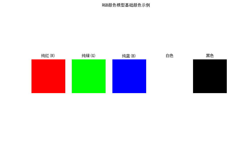 plt.suptitle('RGB颜色模型基础颜色示例', fontsize=12)