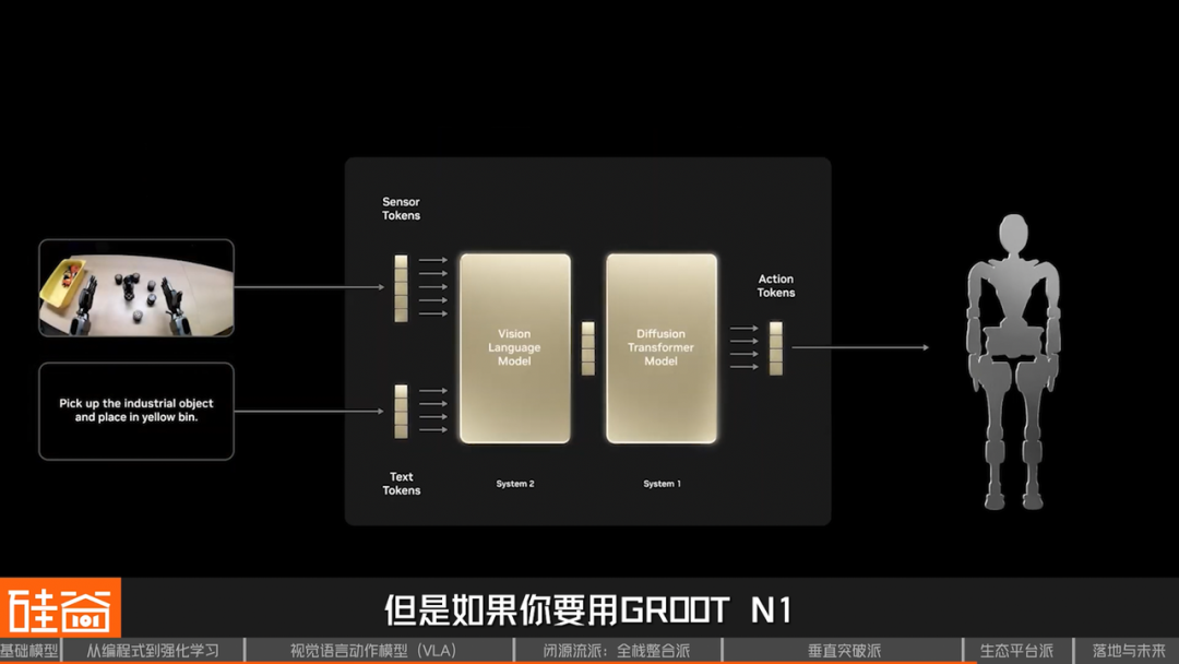 2025年3月的GTC大会上,黄仁勋隆重介绍了GR00T N1,并且把它开源了,听起来很美好,但你要用GR00T N1,就得用全套NVIDIA生态,一个都跑不掉。这就是生态锁定的威力:一旦你用了NVIDIA的全套工具链,切换成本高到让人望而却步。NVIDIA的护城河不是模型本身,而是整个生态。