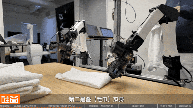 而叠毛巾在如今AI时代来临之后,也同样是非常核心的,需要基础模型去驱动机器人攻破的任务。