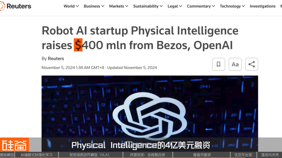 此外,OpenAI也试图通过撒钱投资的方式,打造自己的生态影响力,2024年11月,OpenAI与杰夫·贝佐斯共同参与了Physical Intelligence的4亿美元融资。