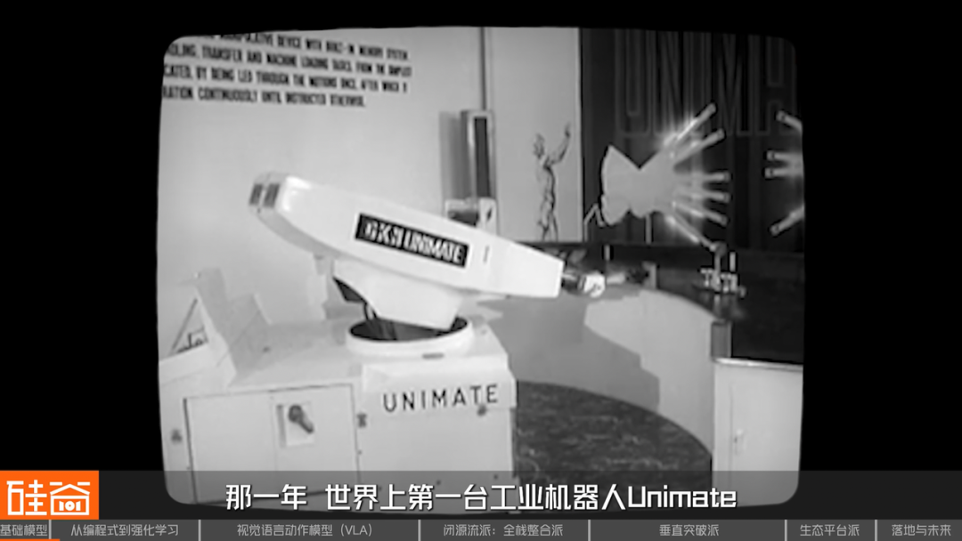 1961年,世界上第一台工业机器人Unimate在通用汽车的工厂里“上班”了。它的工作很简单:从生产线上抓起滚烫的金属零件,放到另一条生产线上。