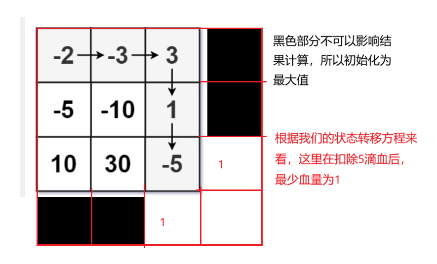 这里表示这个位置扣除血量后,必须满足下一步格子的所需最小血量;