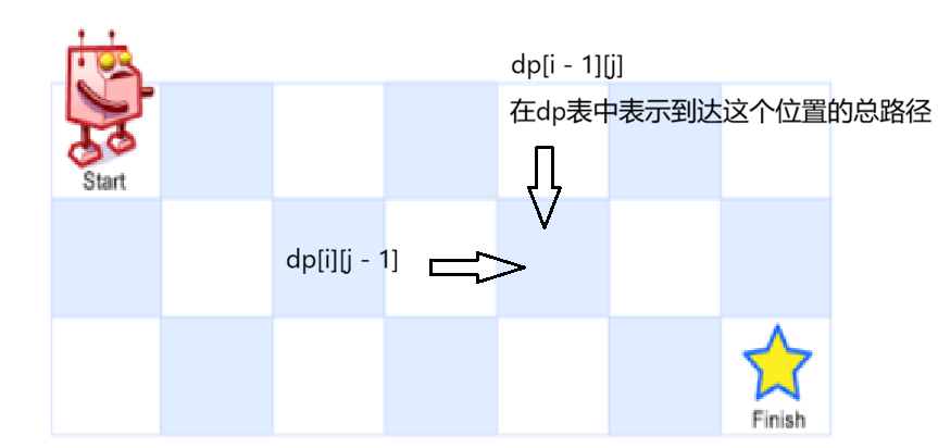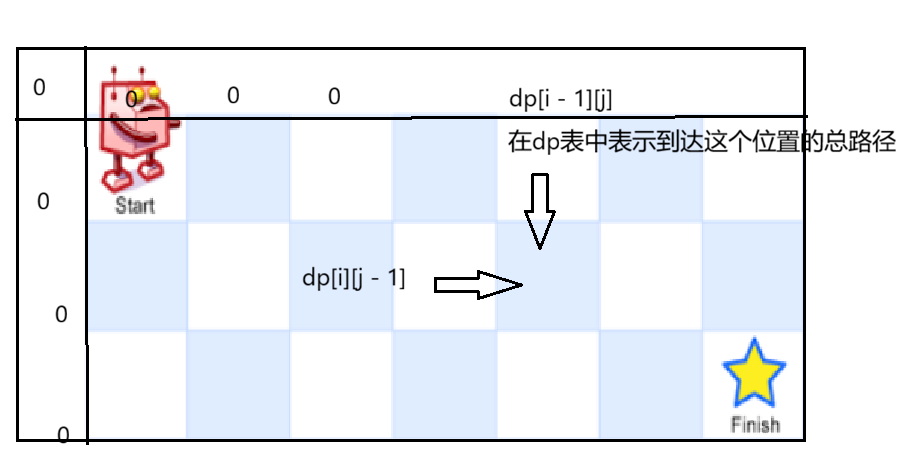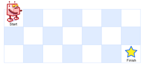 机器人每次只能向下或者向右移动一步。机器人试图达到网格的右下角(在下图中标记为 “Finish” )。