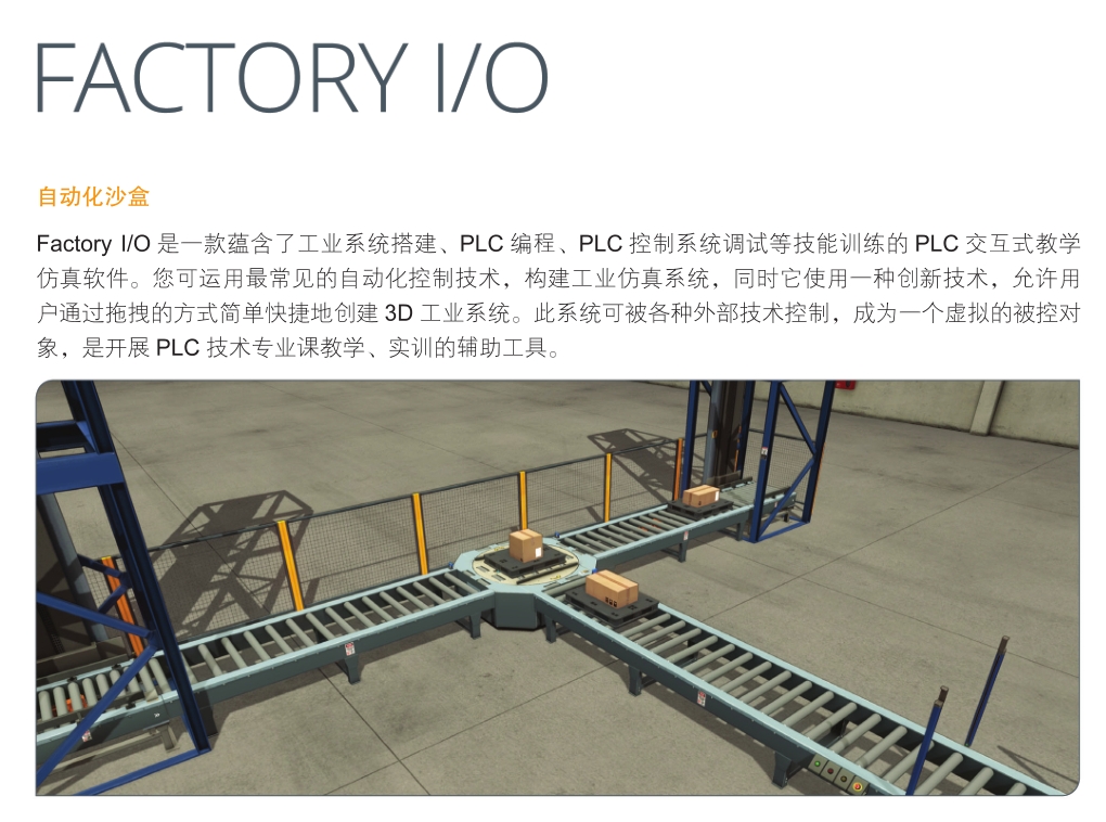 - FactoryIO负责生成或模拟一些信号(比如“托盘到达光电传感器”的信号)。