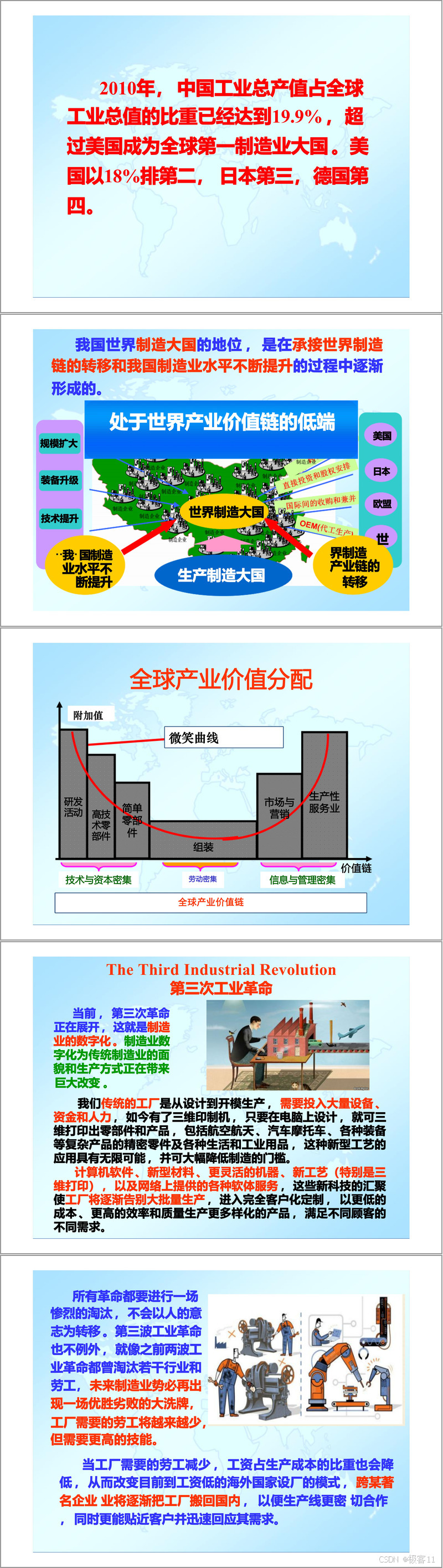 文件引用《经济学人》的评论,警示中国制造业在第三次工业革命中可能面临再度落后的风险。为应对这一挑战,我国提出了“中国制造2025”战略,围绕创新驱动、智能转型、强化基础、绿色发展等关键环节,推动新一代信息技术与制造业深度融合,目标是到2025年迈入制造强国行列。