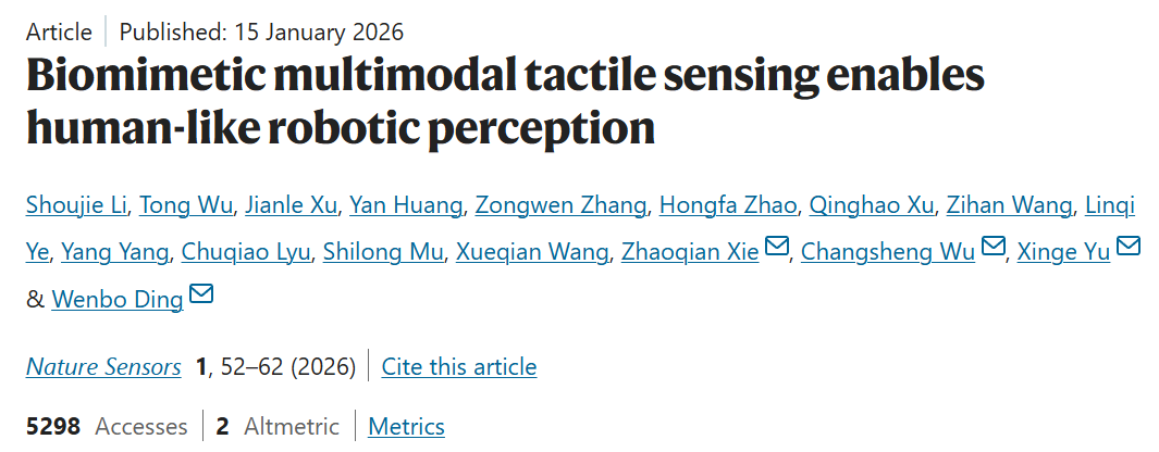相关成果作为封面元素发表于《Nature Sensors》第一期,也是国内以第一单位在该期刊发表的首篇,标志着机器人触觉感知向「人类水平」迈出了关键一步。