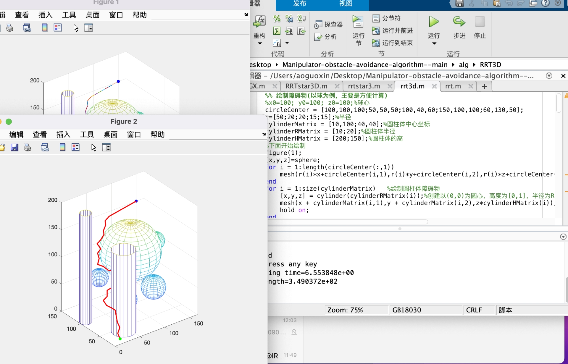 假设我们有一个简单的 3D 环境,包含一些障碍物,咱们来看看 RRT 3D 算法的 MATLAB 代码实现片段: