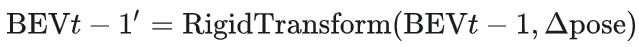 时空对齐模块基于车辆自运动参数,将前一帧BEV特征在世界坐标系中进行刚性变换,解决时空对齐误差问题。