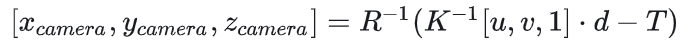 其中K为内参矩阵,d为像素深度,R和T为外参