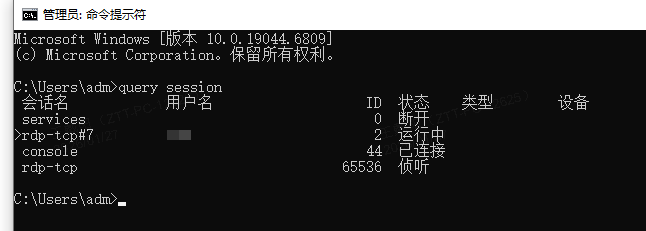tscon 2 /dest:console#无密码则可使用这一行命令,将2替换成自己查询的id