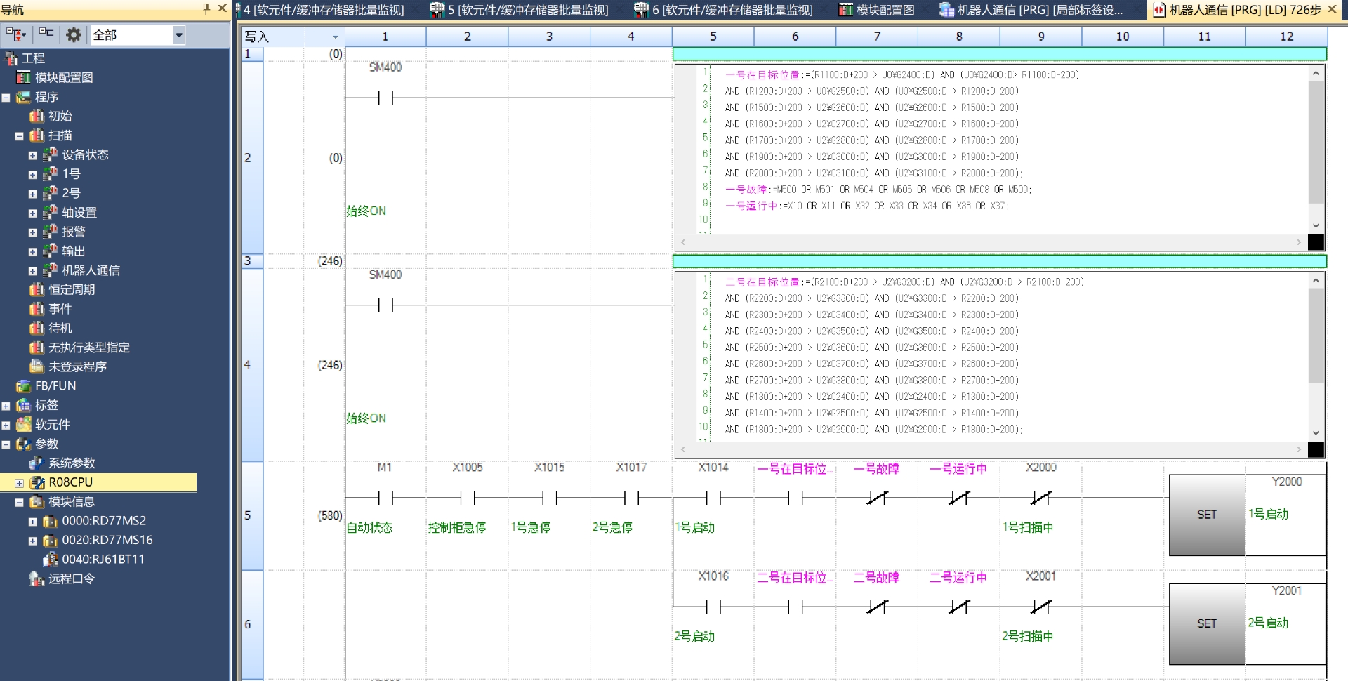 在自动化产线调试现场摸爬滚打过的工程师都懂,能把三菱R系列全家桶玩转的项目绝对够硬核。这次分享的案例堪称PLC界的满汉全席——从ST编程到机器人联机,从双屏配方向到EPLAN图纸,完整展示了一套高端设备的控制逻辑。咱们直接上干货,边拆代码边唠实战经验。
