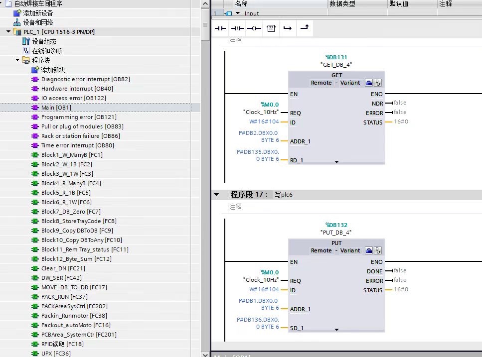 西门子1500PLC博途程序实例,大型程序fanuc机器人汽车焊装自动生产线程序,程序硬件结构包括1台西门子1500PLC程序,2台触摸屏TP1500程序 9个智能远程终端ET200SP Profinet连接 15个Festo智能模块Profinet通讯 10台Fanuc发那科机器人Profinet通讯 3台G120变频器Profinet通讯 2台智能电能管理仪表PAC3200 4个GRAPH顺控程序 图尔克RFID总线模组通讯 和MES系统通讯,西门子安全模块 程序经典,结构清晰,SCL算法,堆栈,梯形图和SCL混编 你要的知识点都在这里