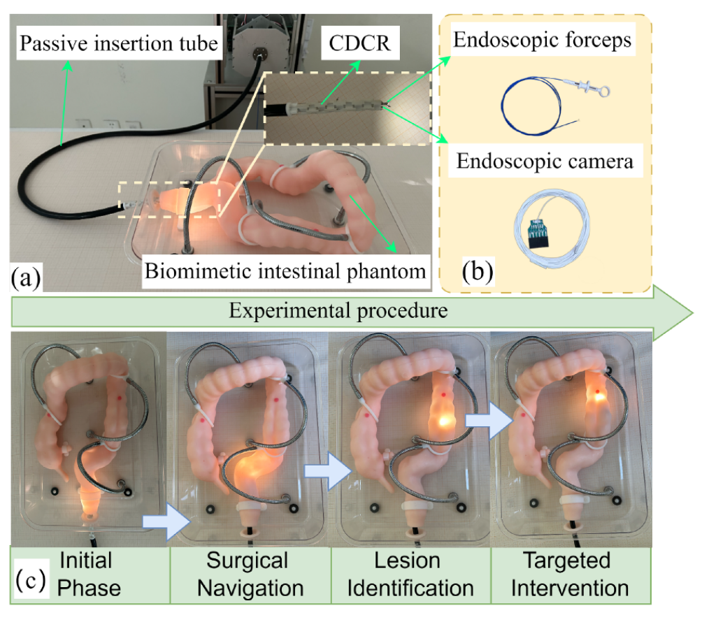 实验整合了内窥镜活检钳与高分辨率成像模块,基于自主研制的集成控制系统,配合实时影像导航技术,实现了机器人末端在模拟解剖环境中的精准空间定位与病灶稳定接触。
