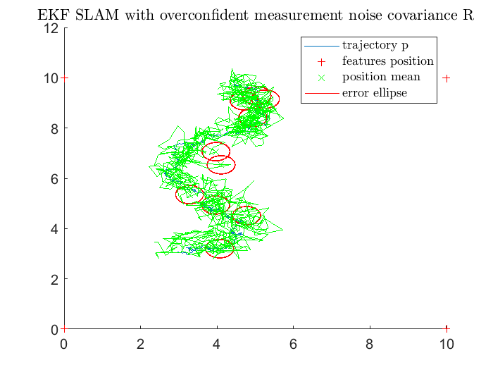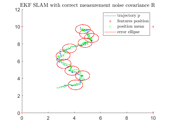 【滤波跟踪】机器人未知测量噪声的扩展卡尔曼滤波同时定位与地图绘制matlab代码