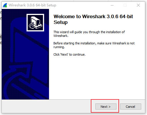 4.1:双击解压后的Wireshark安装包,运行安装程序,直接点击Next。