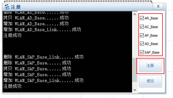 6.2:点击右上角菜单--工具--注册设备,选中右侧五个选框,点击注册,点击退出,关闭ensp重新启动。