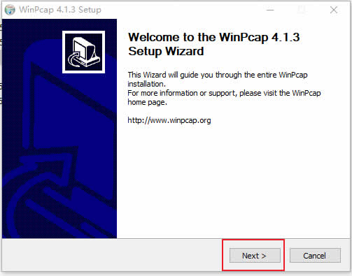 3.1:双击解压后的WinPcap安装包,运行安装程序,直接点击Next。