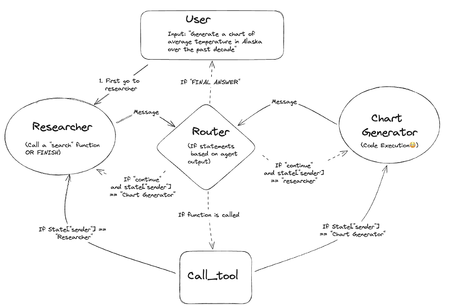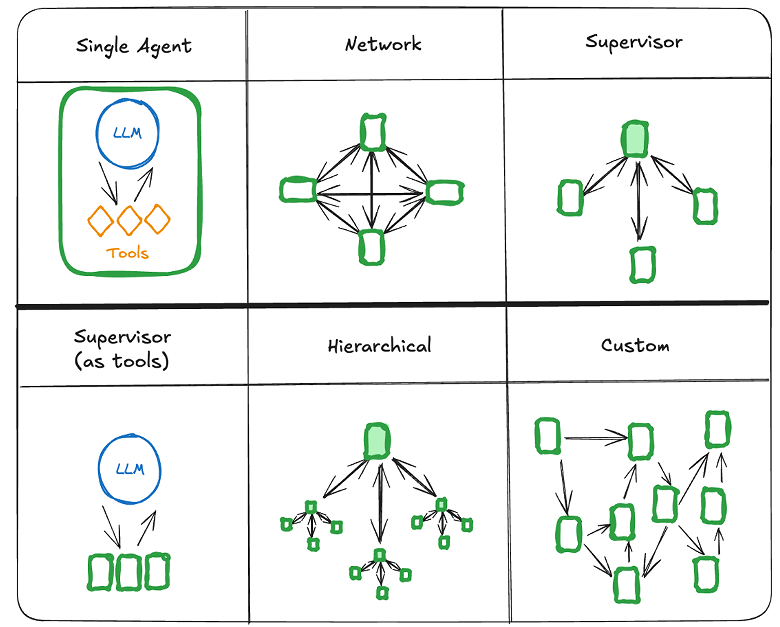 LangGraph是LangChain的扩展,专治图状工作流。常见架构:
