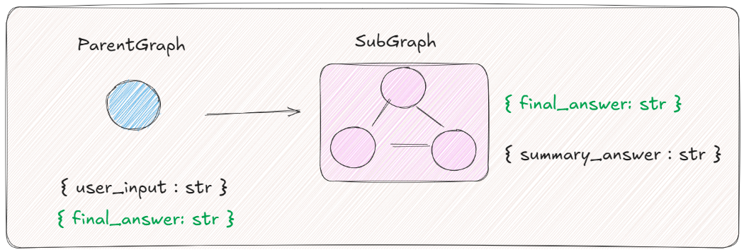 核心:Subgraph是可复用的“图块”,父图里塞进去,就能共享状态。简单比喻: