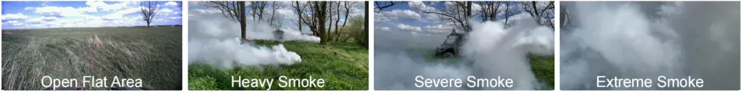 图1|不同程度的退化场景(可见性伴随着烟雾的增加不断下降)