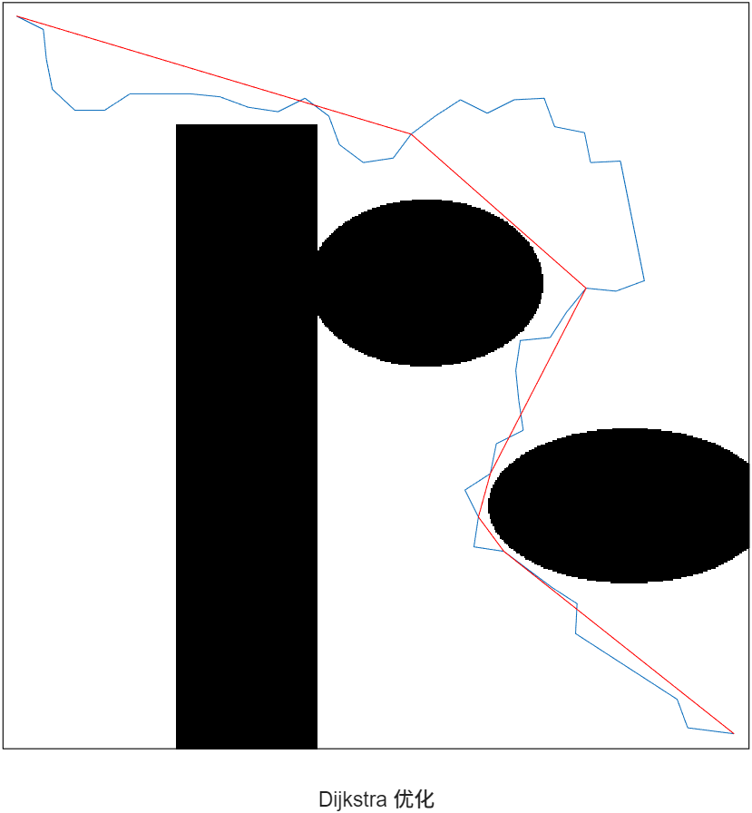 局部路径优化:RRT生成的路径包含大量冗余转折点,直接应用于实际机器人会导致能耗增加和运动抖动。Dijkstra算法通过构建可视图(Visibility Graph)可消除非必要转折,实现路径平滑化。
