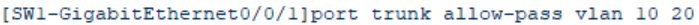 - 需要VLAN10 20 通过,Trunk类型,带VLAN标签